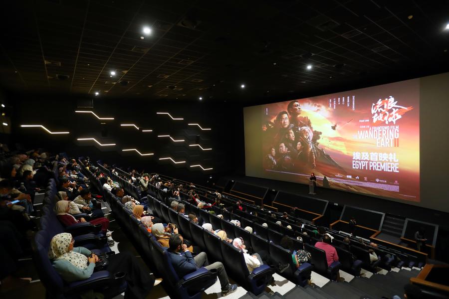 2023年3月11日,人们在埃及吉萨一家电影院参加电影《流浪地球2》的首映礼。新华社记者 隋先凯 摄