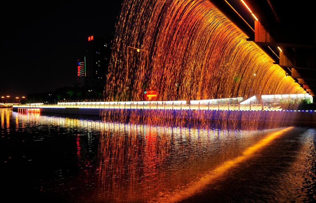 2014年6月22日,我正在河北沧州采访,准备吃晚饭时,突然看到手机上显示大运河申遗成功的消息。回到宾馆,我拿上相机就飞奔出去,来到清风楼下的大运河景观带,记录下了大运河夜色。