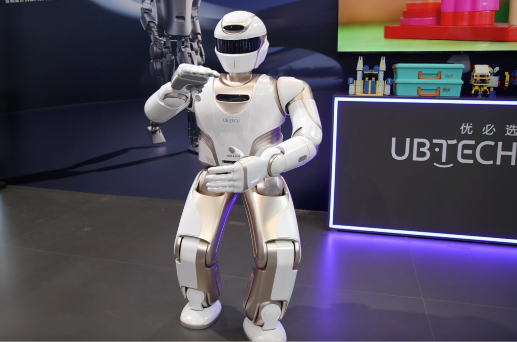 在“智能机器人展区”里,一款人形机器人正打着太极拳,动作专业。“这是我们自主研发的人形机器人Walker X,搭载41个高性能伺服关节,具备手眼协调、取物等功能。”优必选科技人形机器人交付负责人熊竟闯说,这款机器人不仅可以做家务,还可作为成长伴侣,给儿童读绘本,陪他们聊天。