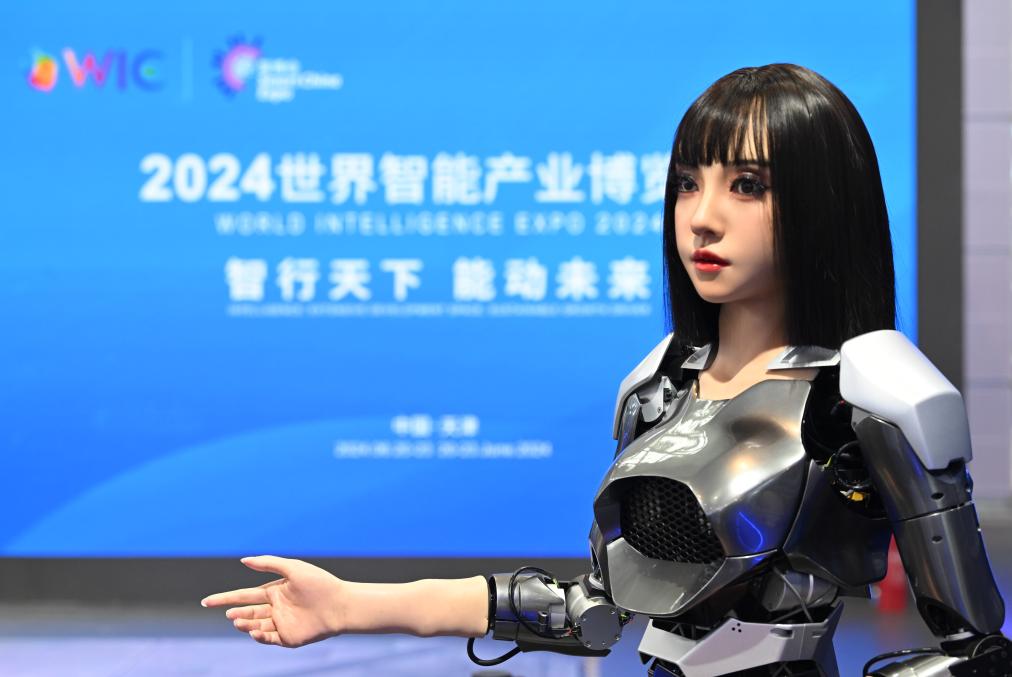 新华社天津6月22日电(记者徐思钰、张宇琪)“你好,我是聪明善良的小柒同学,我可以做很多事情……”正在天津举办的2024世界智能产业博览会(以下简称“智博会”)上,中国移动展出的AI仿生人向参展观众进行自我介绍,大家纷纷拿起手机拍照。