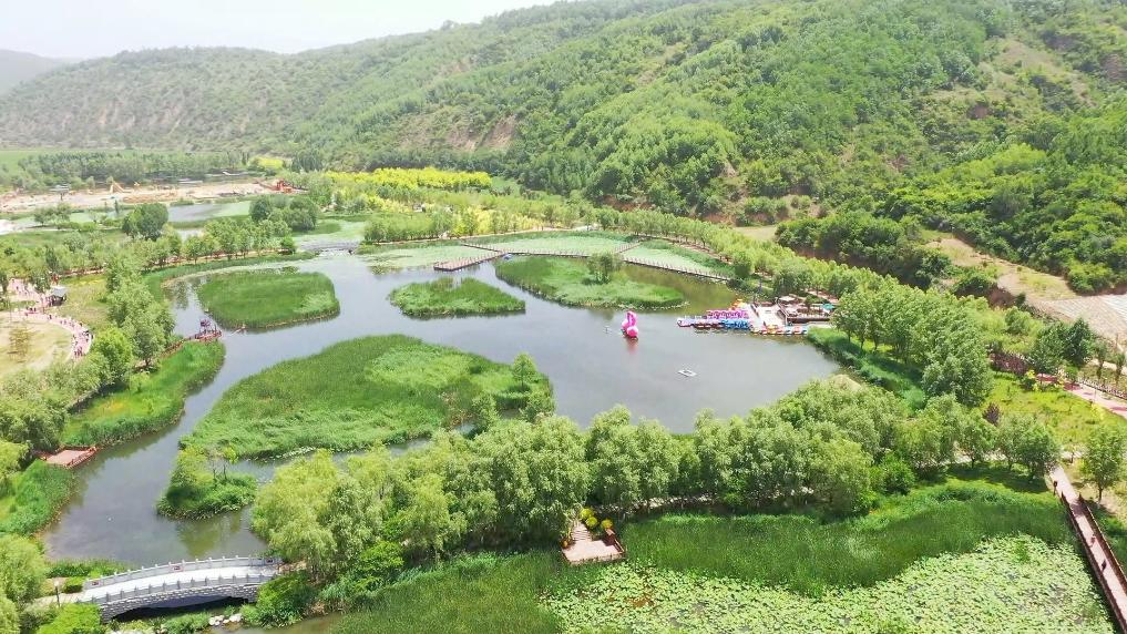 步入南泥湾国家湿地公园,芦苇随风轻摇,碧波荡漾,水绿山青。