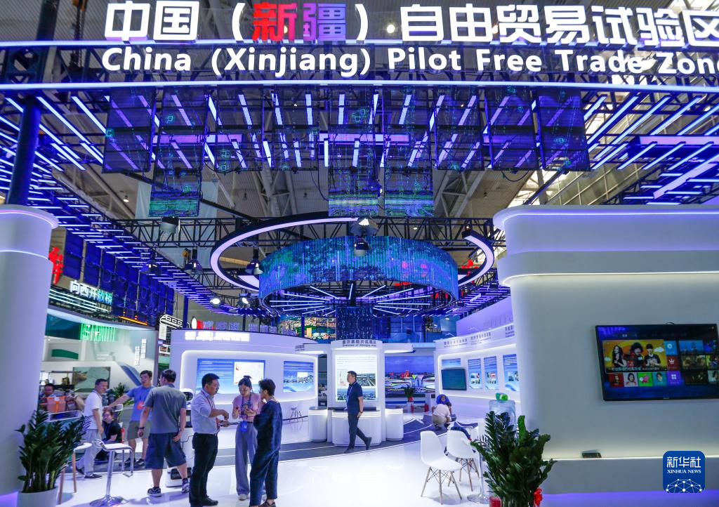 这是6月25日在第八届亚博会拍摄的中国(新疆)自由贸易试验区展台。新华社记者 陈朔 摄