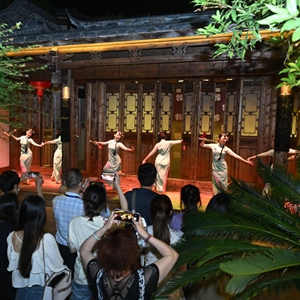 观众在三坊七巷历史文化街区参观沉浸式实景演出。新华社记者 李贺 摄