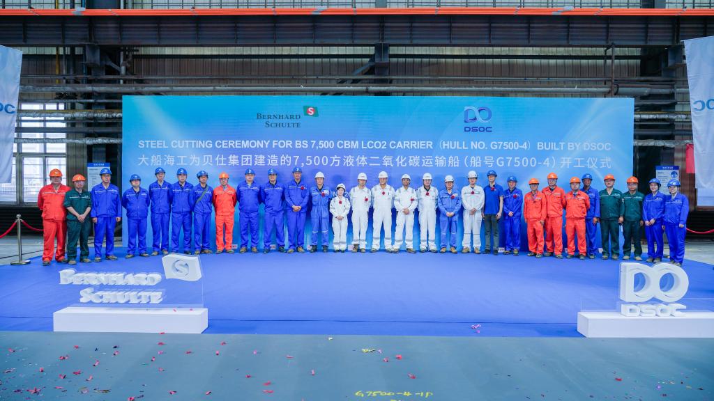6月26日上午,大连海工为贝仕集团建造的7500立方米液体二氧化碳运输船开工仪式。新华社发