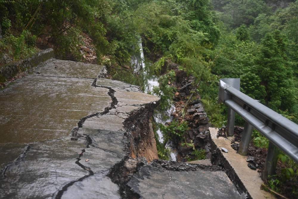 浙江省杭州市淳安县屏门乡一处山村公路出现山体滑坡(6月26日摄)。新华社记者黄宗治 摄