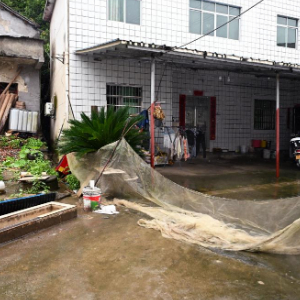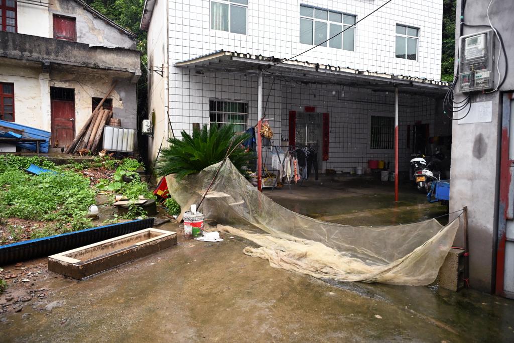 6月25日,景德镇市浮梁县三龙镇三龙村一被转移群众的家门口。新华社记者 隋尚君 摄