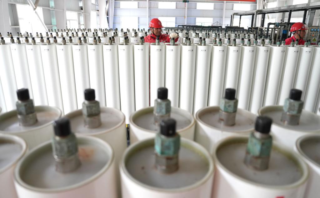 6月25日,在重庆市涪陵区白涛镇油坊村的涪陵页岩气田白涛产出水处理站,工作人员对双膜减量系统进行巡检。该站采用先进的“预处理+双膜减量化+蒸发结晶”工艺流程处理,产出水中的氯化物等物质被蒸汽蒸发浓缩成工业盐,满足国家环保要求和精制工业盐二级标准要求,处理合格的产出水达到国家污水综合排放一级标准。