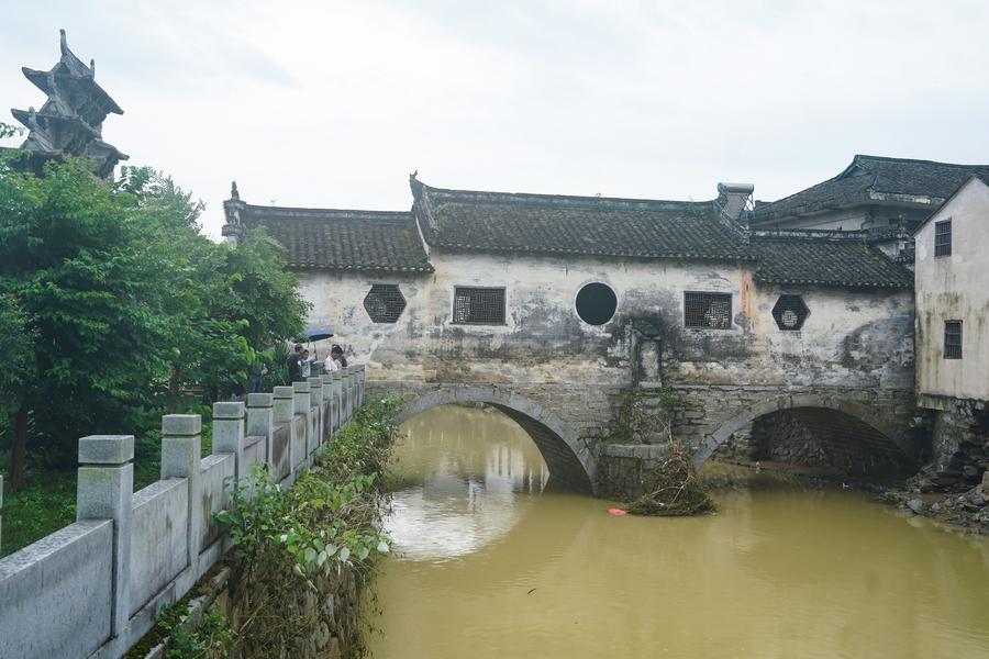 这样的设计理念,在黄山的很多古村落中都有体现。唐模村位于黄山市徽州区潜口镇东部,始建于唐朝(618年-907年)初年,本轮强降雨后,村内设施及古民居状况良好。