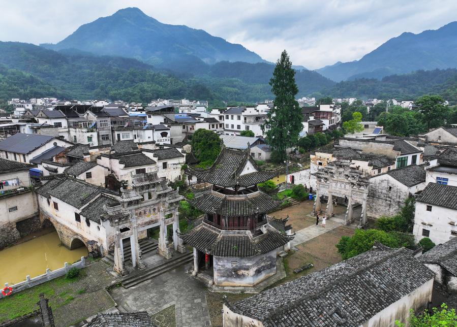 这是6月22日拍摄的安徽省歙县许村古建筑群(无人机照片)。新华社记者 杜宇 摄