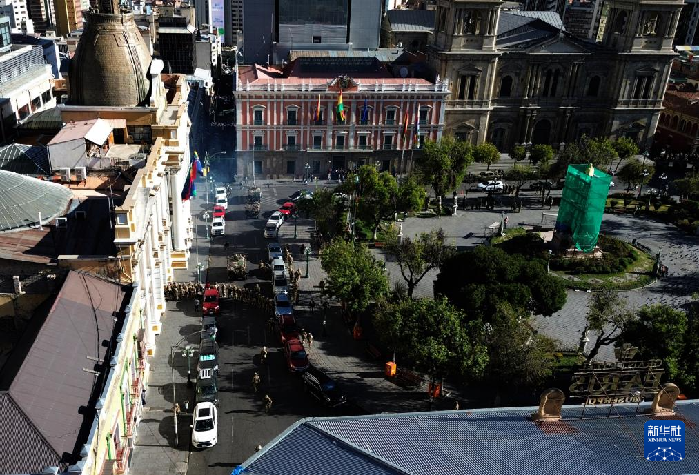 这是6月26日拍摄的玻利维亚拉巴斯总统府附近的广场(无人机照片)。新华社发(哈维尔·马马尼摄)