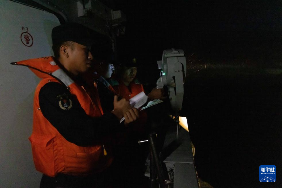 6月26日,在中越第36次北部湾联合巡逻中,中方舰艇官兵发送灯光信号。新华社发(佟佳峻 摄)