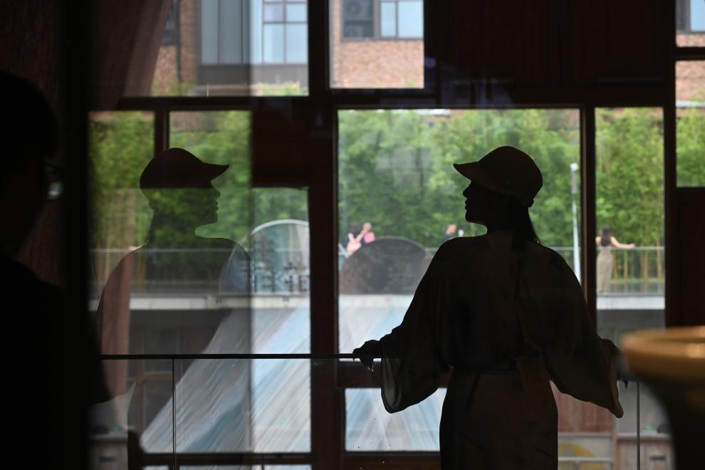 2024年6月5日,一位身穿传统服装的游客在江西景德镇御窑博物馆内游览。新华社记者 刘力航 摄