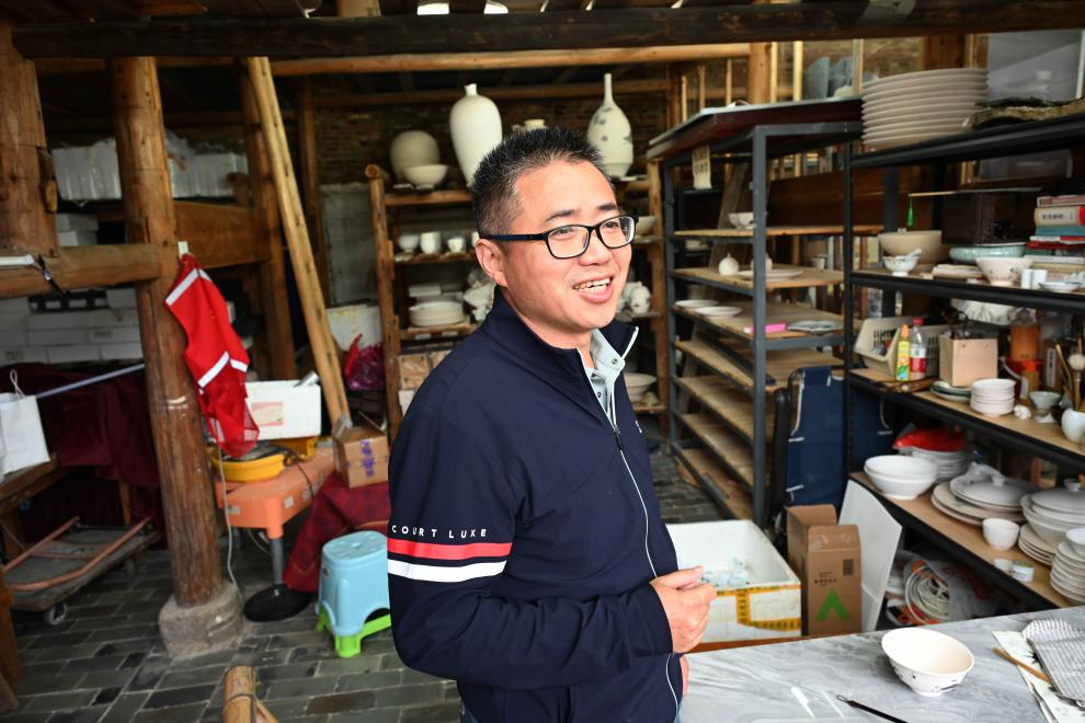 2024年6月5日,江西景德镇陶瓷手艺人孙立新在自己的工坊内。新华社记者 刘力航 摄
