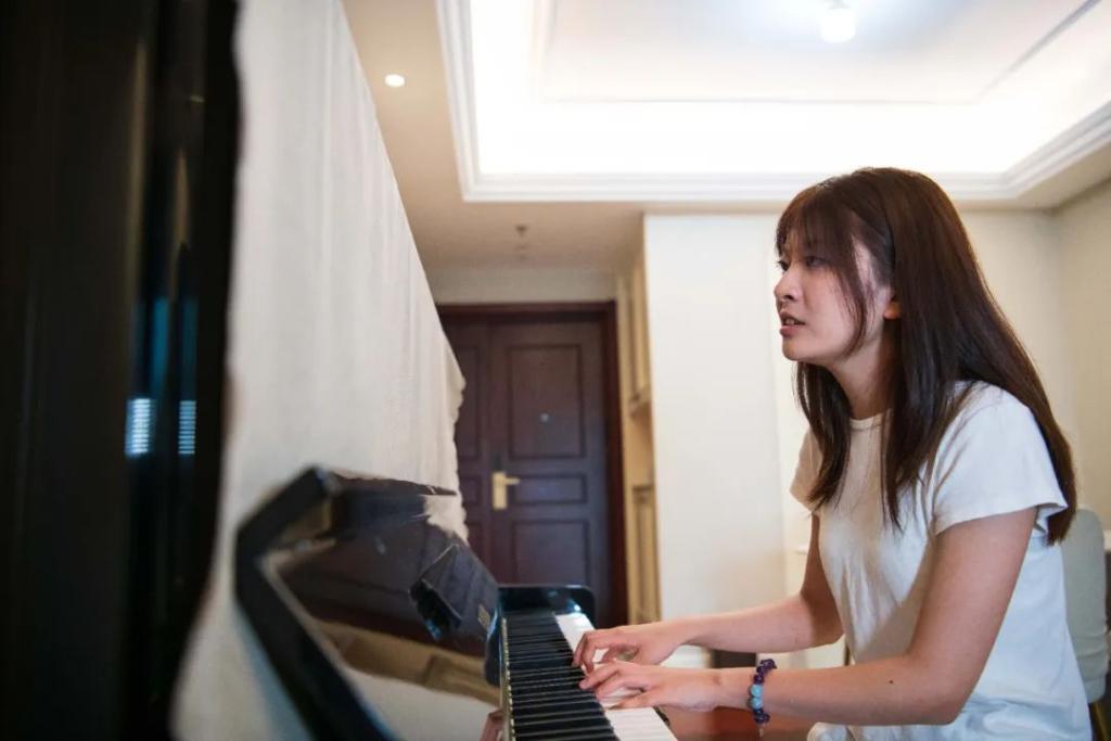 6月24日,郁晓楠在家中弹琴。新华社记者 张端 摄