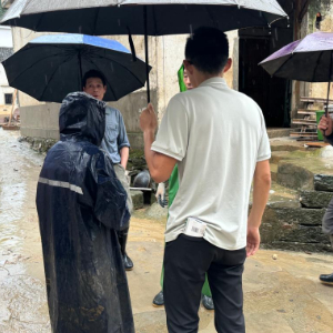 岭口村党总支书记王涛涛可能是村里最忙碌的人。记者见到他时,他穿着胶靴、撑着伞、兜里揣着一个笔记本,挨家挨户了解村民受灾情况。