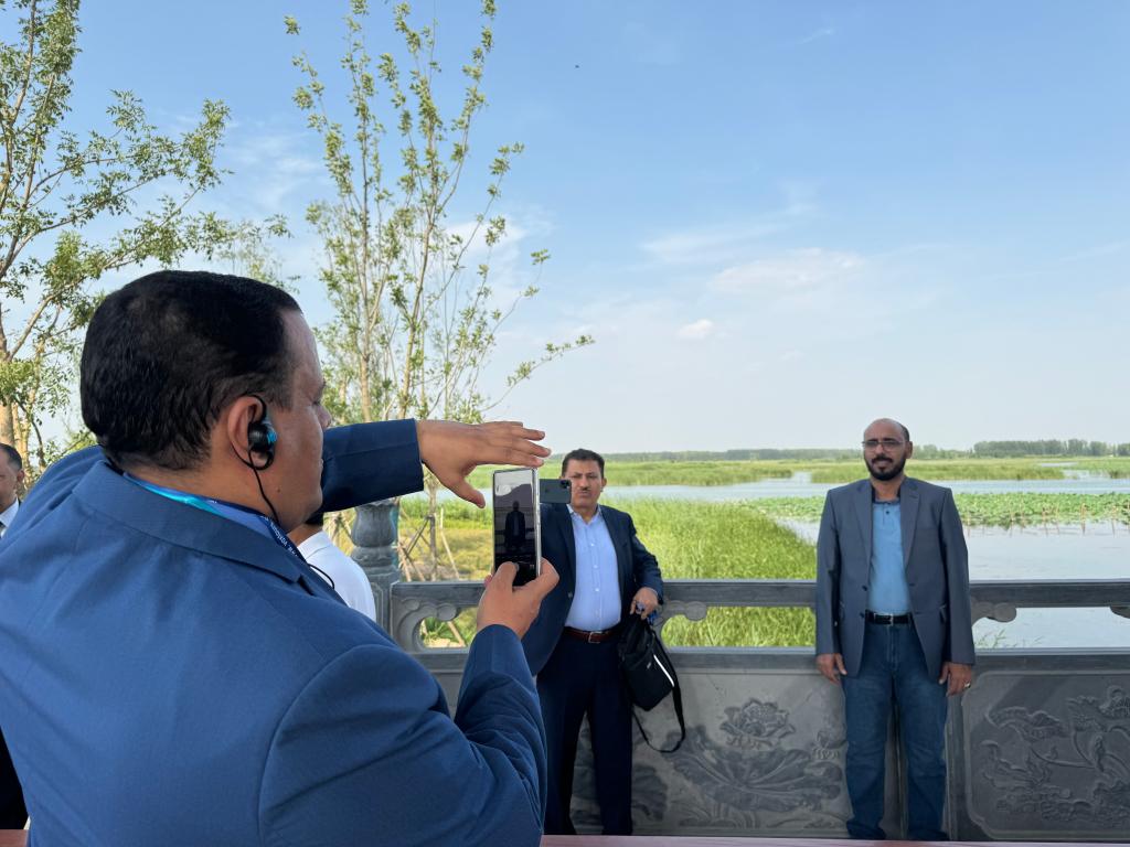 来到“华北明珠”白洋淀,夏阳艳艳,荷叶田田。游船穿梭往来,飞鸟翩然掠过,代表们陶醉在这幅人与自然和谐共生的美丽画卷中,纷纷拍照留念。