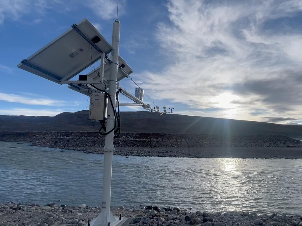 考察团队在措嘉冰川安装的新设备,以检测冰川融水的水位和所在地区的气象条件(6月23日摄)。新华社记者 邱星翔 摄