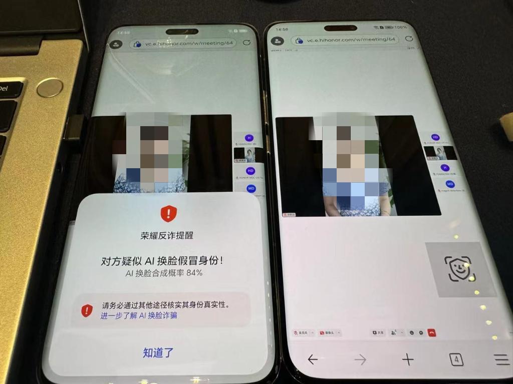 记者在荣耀展台看到,通过算法创新,手机不仅具备“AI美图”“智能会议”“文生图”等功能;针对用户需求,未来还能提供“智能反诈”“智能护眼”等新场景。例如,通过点击手机自带的智能反诈功能,就能一键检测实时视频是不是深度伪造的;通过人工智能算法实现图层离焦,相当于把手机屏幕变成一个离焦镜,能一定程度改善看屏体验、舒缓眼部疲劳。
