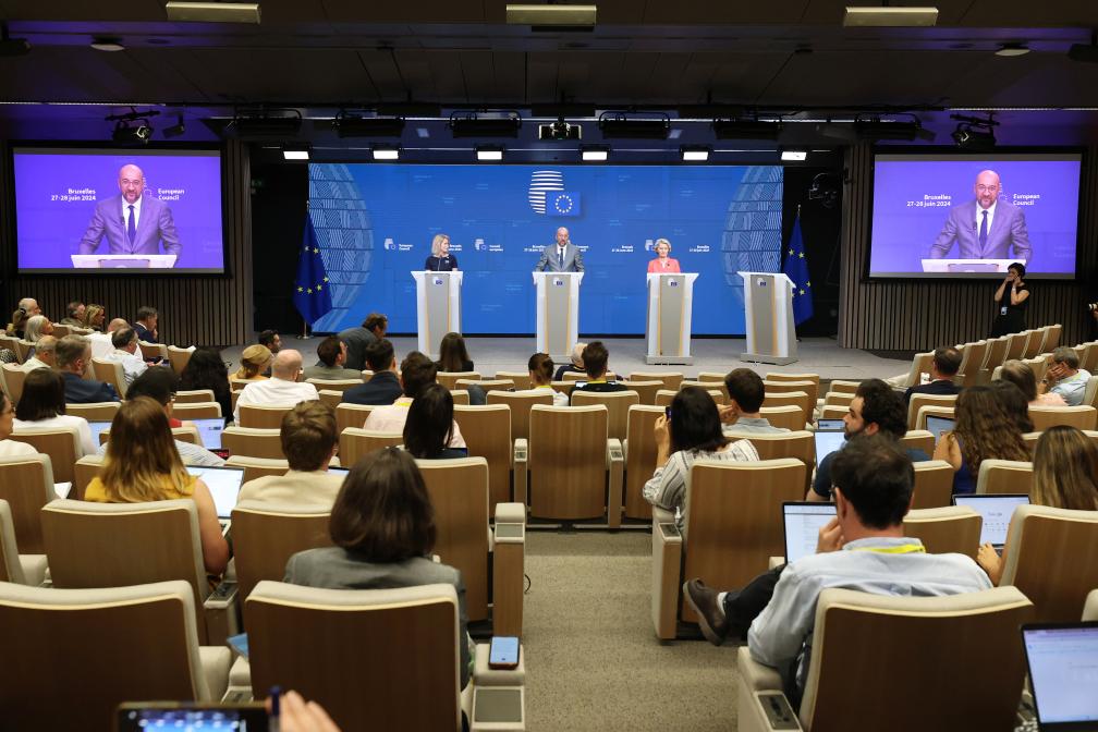 自6月9日欧洲议会选举投票落下帷幕,欧盟内部已就新领导层人选多次协商,但始终存在分歧。据媒体报道,峰会前夕,代表欧洲人民党党团、社民党党团和复兴欧洲党团所组成联盟的6位欧盟国家领导人,就欧盟新领导层人选达成共识。但由于该方案需要在峰会上得到欧盟27国领导人的多数支持才能通过,为了避免影响其他议程,这个极具“敏感性”的议题被放在了27日晚最后讨论。