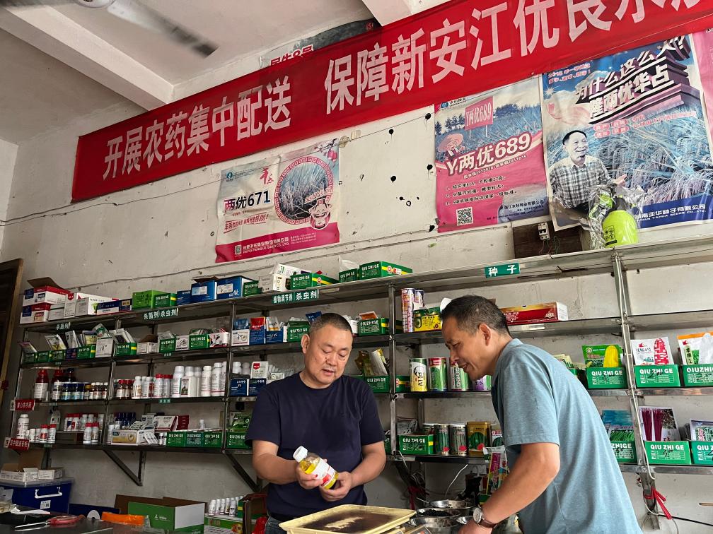 “当前到了防治二化螟和卷叶螟等虫害时节,上门的村民多了些。”方昌升说,他这家农资店是村里两个农药配送网点之一。