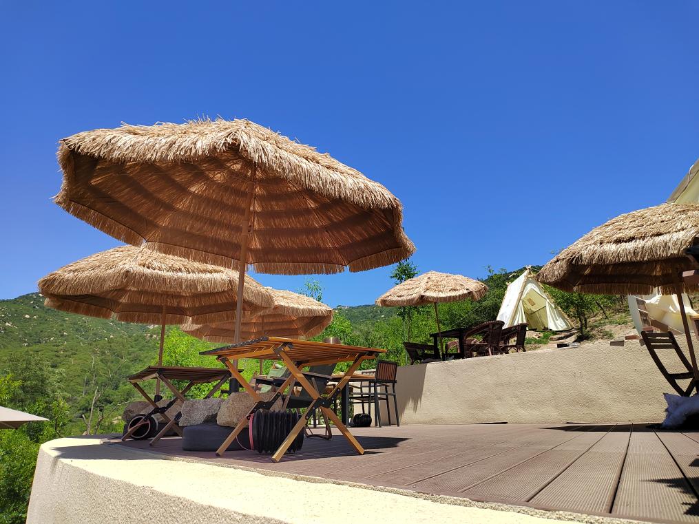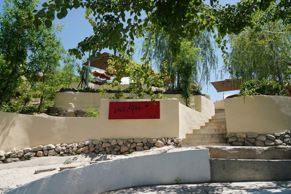 在上王峪村,距离河茵咖啡仅200米还有一家嵄落咖啡。顺着山势,这家咖啡馆在山间高低错落地摆放着百余个座位。嵄落咖啡主理人王春力2022年9月回到家乡创业,开设了这间乡村咖啡馆。