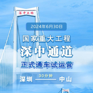 深圳至中山的车程将从此前约2小时缩短至30分钟