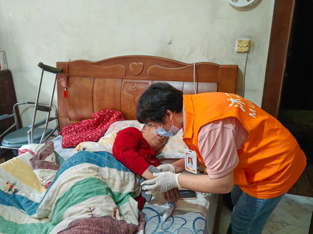 “一天能睡几个小时?身体有没有不舒服……”问完近期身体情况,张怀琼打开背包,拿出消毒工具给肖婆婆的手臂消毒,然后测量血压、脉搏。