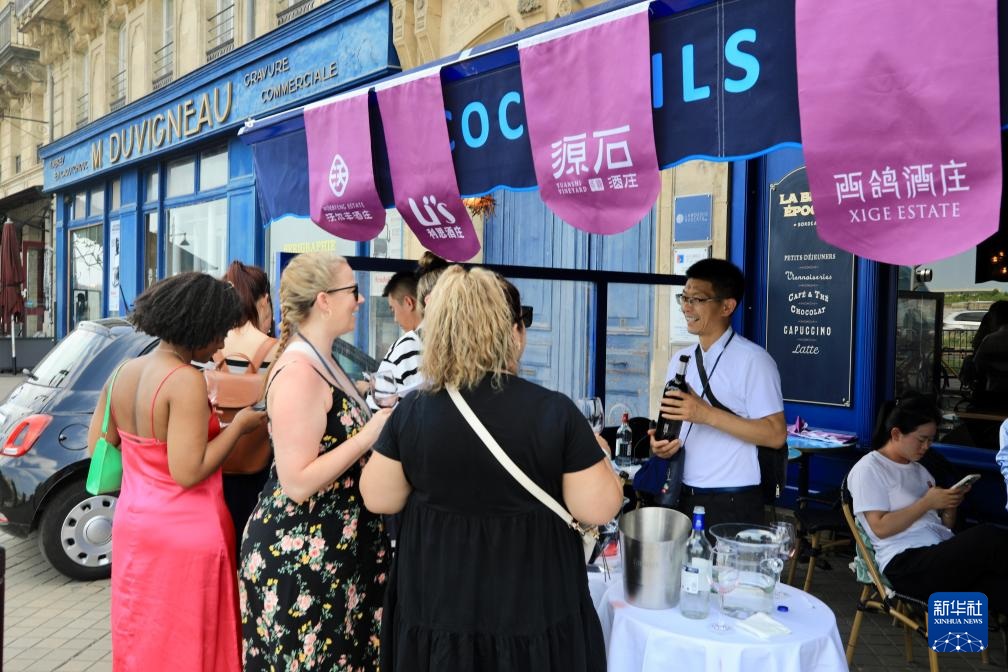6月27日,人们在法国波尔多市举行的2024波尔多葡萄酒节上品尝来自宁夏贺兰山东麓葡萄酒产区的葡萄酒。新华社发(受访者供图)