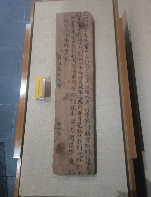 当年红军给藏族同胞留下的木制借据。红军长征纪念碑碑园管理处供图