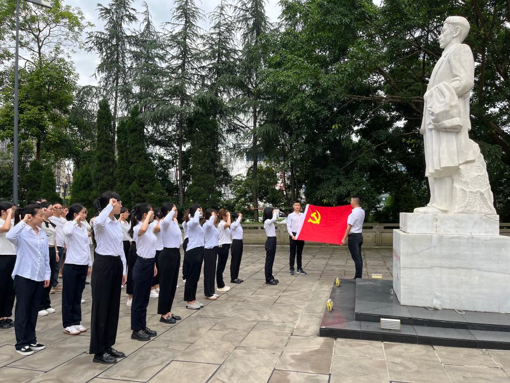 6月28日,四川省宜宾市高县40名新发展党员在李硕勋烈士像前举行入党宣誓仪式。(高县县委组织部供图)