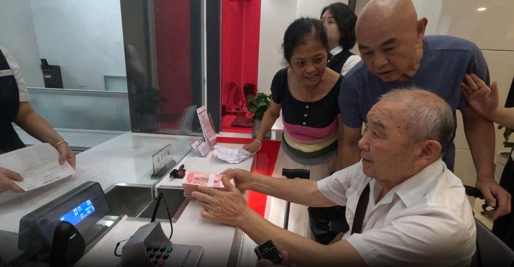 6月24日,90岁的老党员穆正琪在银行交纳特殊党费。(泸州市公安局供图)