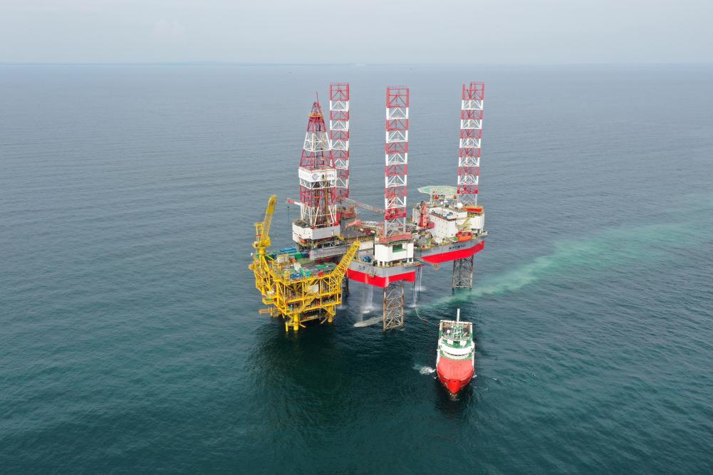 中国海油湛江分公司乌石油田作业公司总经理戴毅说,乌石23-5油田群将“绿色低碳”贯穿于油田的设计期、建造期、生产期,开启了油田高效设计、绿色建设新模式,推动海上石油勘探开发生产的低碳化转型。(记者黄国保、张程喆)