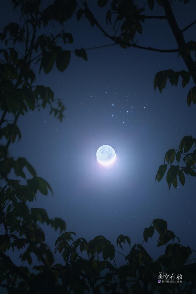 星空摄影师鲁罡2024年4月11日在甘肃陇南市拍摄的昴星团伴月。(星联CSVA供图)