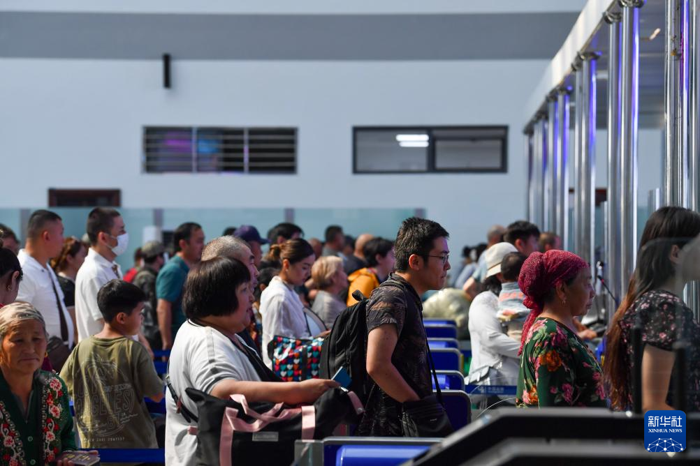游客在霍尔果斯公路口岸办理出境手续(6月10日摄)。新华社记者 赵戈 摄
