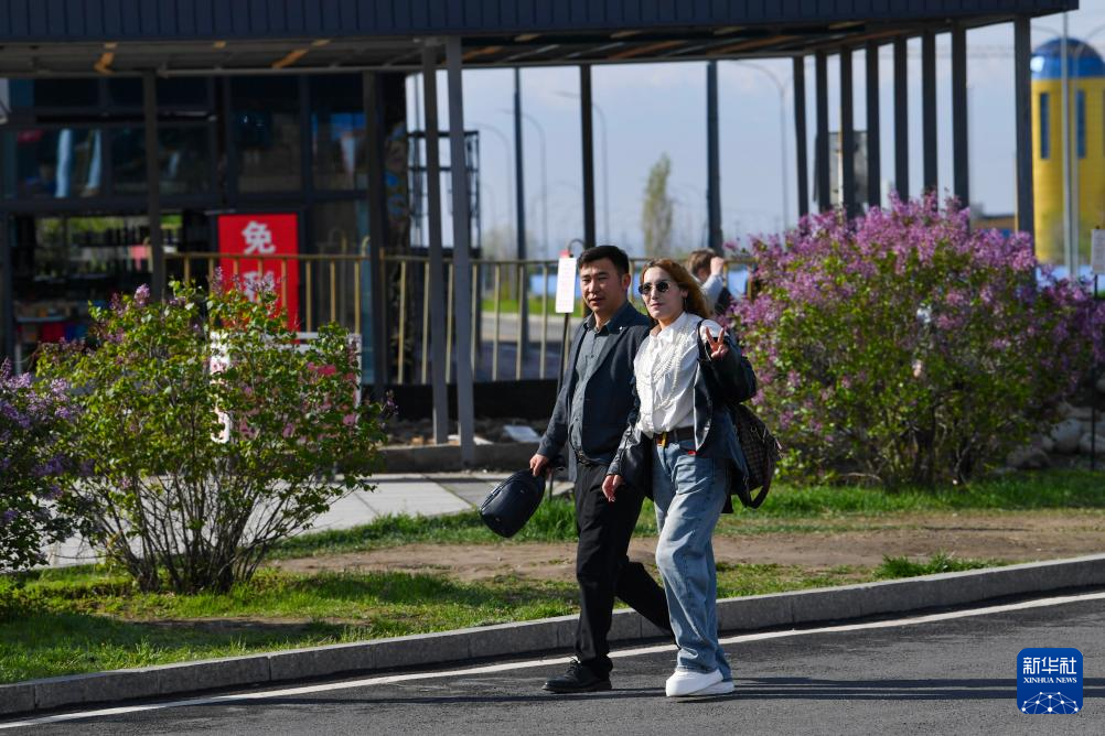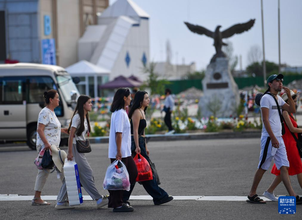 游客行走在中哈霍尔果斯国际边境合作中心哈方一侧(6月10日摄)。新华社记者 赵戈 摄