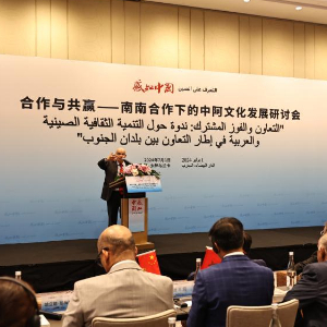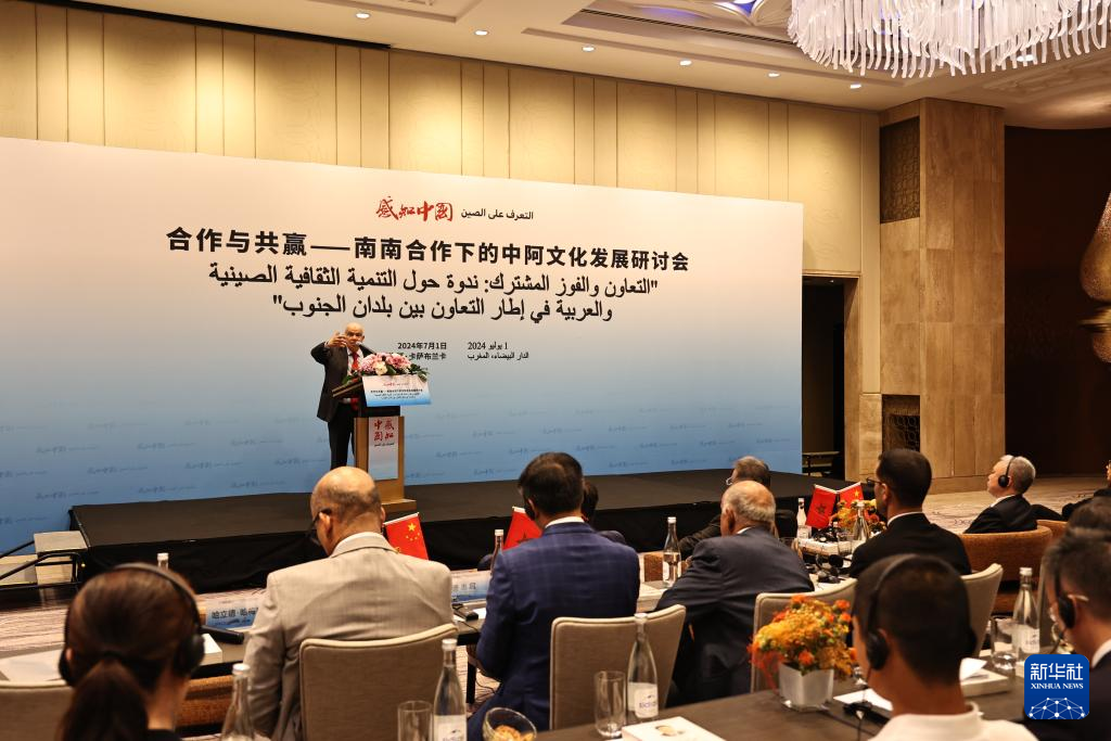 新华社摩洛哥卡萨布兰卡7月2日电 “合作与共赢——南南合作下的中阿文化发展研讨会”7月1日在摩洛哥卡萨布兰卡举办,旨在推动南南合作框架下中阿文明互鉴、合作共赢。来自中摩两国文化与国际关系领域的70余名嘉宾代表参加。