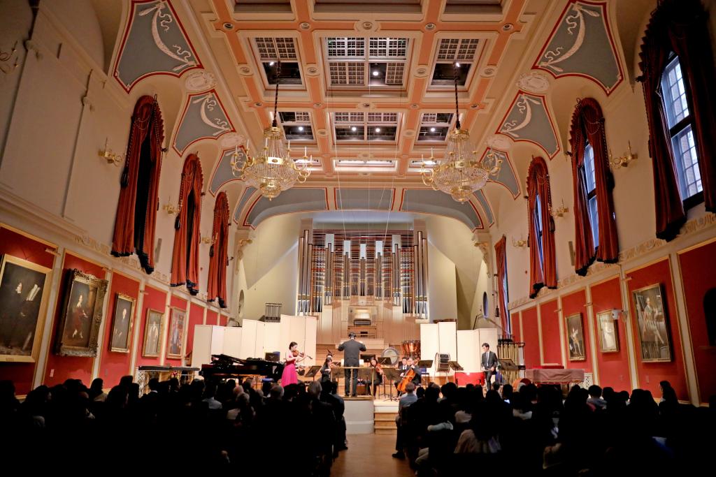 音乐会为观众呈现了由中国作曲家创作的《笑春风》《阿曼尼莎》《马九匹》等作品。作品融合东西方的意蕴和现代表达手法,通过钢琴、小提琴、二胡等中西方乐器的演奏,令现场观众陶醉其中。