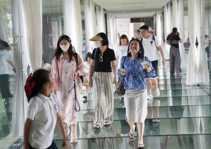 2024年6月27日,游客走在景宁县鹤溪街道那云·天空之城度假区玻璃景观栈道上。新华社记者 韩传号 摄