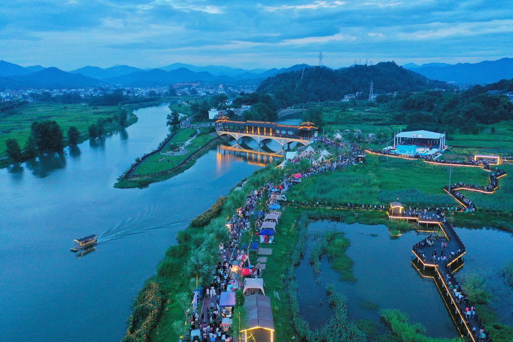 联手治水提升了生态环境,也让流域周边群众在家门口吃上了“生态饭”“文旅饭”。过去常年外出务工的江口村村民易磊回村后,与江口村一公司合作,向有关单位申报批准,购买了十余只游船在萍水河里游览,每天前来乘船的游客络绎不绝。