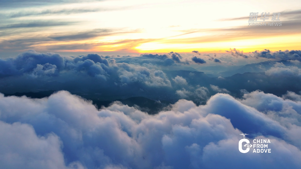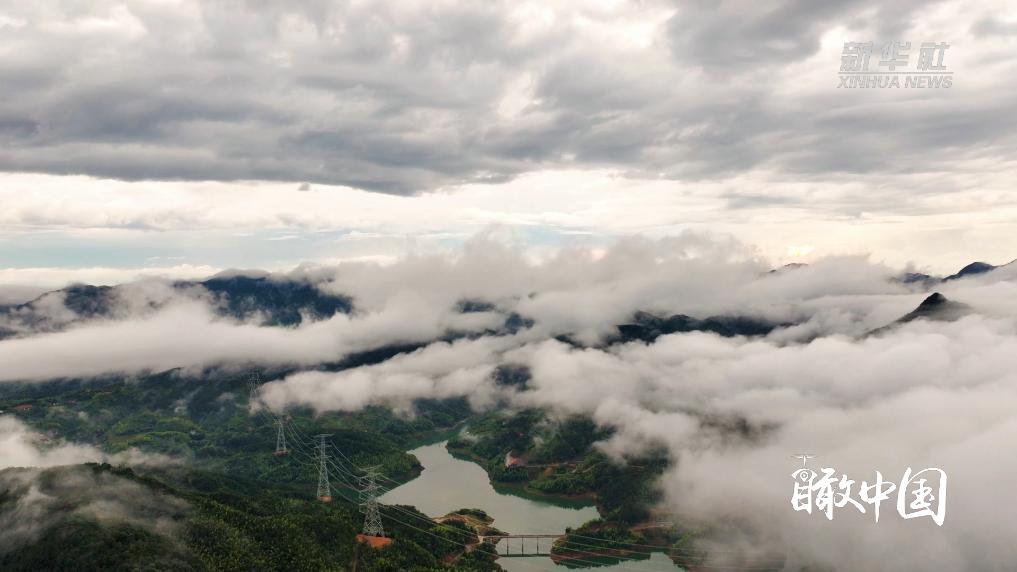 盛夏时节,晨曦微露,从高空俯瞰福建德化云龙湖水库,云龙湖上云雾升腾,飘渺梦幻,四周青山耸立,湖光山色交相辉映,似一幅流动的水墨画卷。