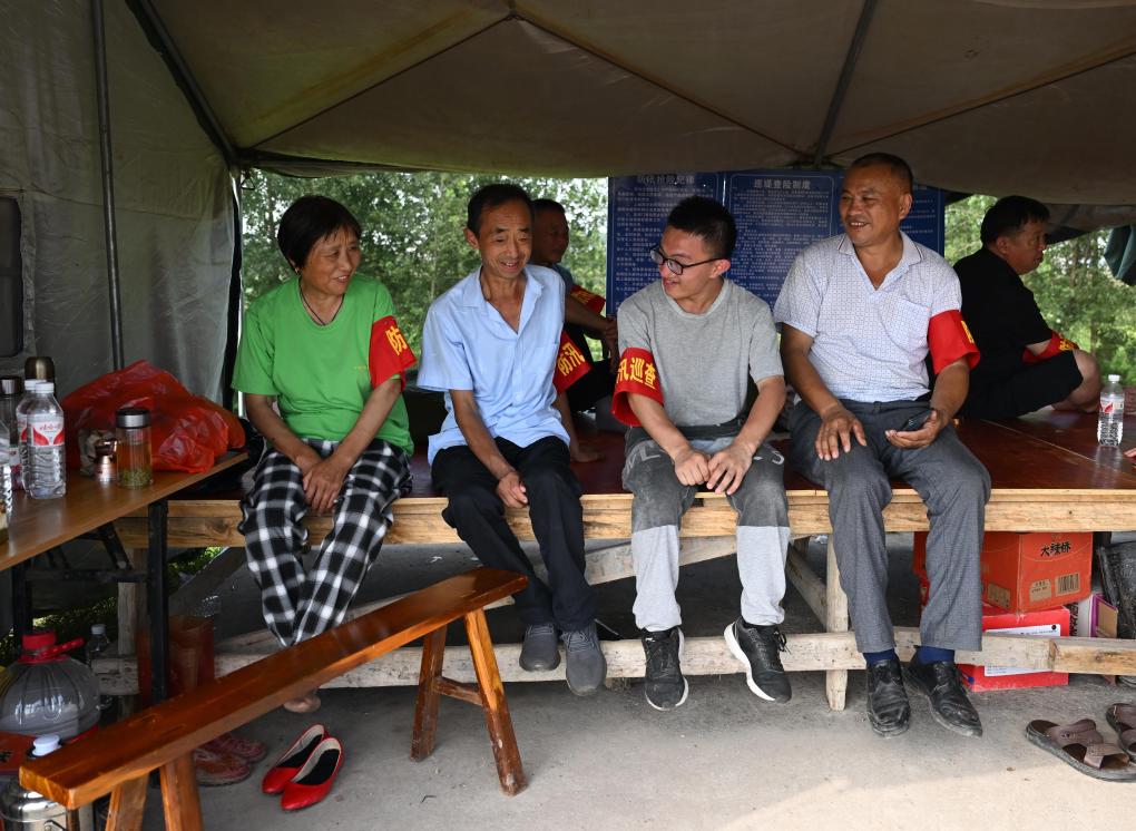 巡堤的日子也很热闹。一个帐篷里,大多是与谭康同村的长辈,都是汇口镇龙潭村段尾组的村民。闲暇时候,他和大伙儿聚在一起聊天,有时也会一个人去堤上散步,他说去外地读书后回来也不多,正好多看看家乡。