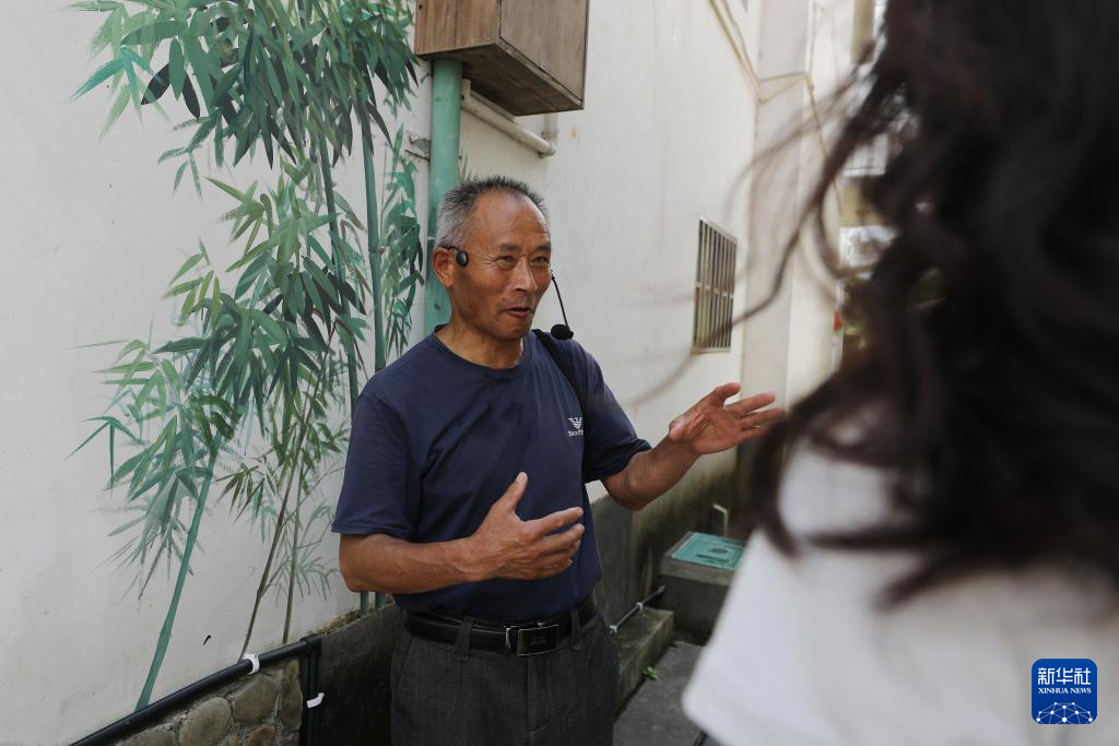 7月3日,石门村护鸟队队长俞旺金在村里为人们讲解。 新华社记者 杜潇逸 摄
