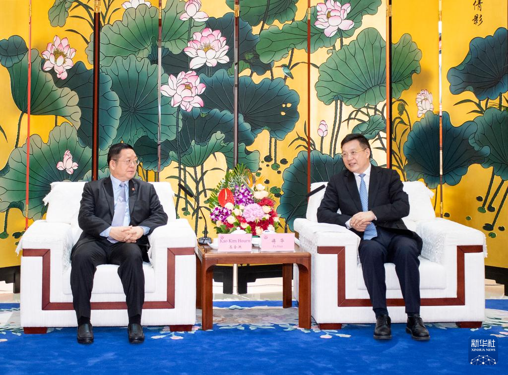 7月4日,新华社社长傅华在北京会见东盟秘书长高金洪。新华社记者 李涛 摄