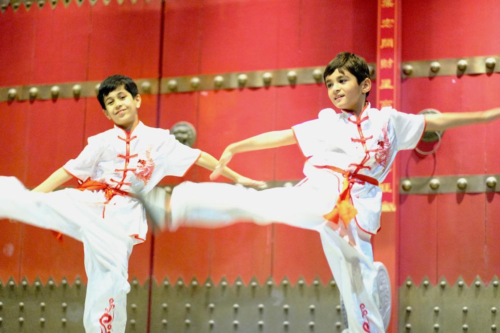 6月11日,在塔吉克斯坦首都杜尚别,爱好中国武术的当地儿童参加塔吉克斯坦民族大学孔子学院的武术表演排练。