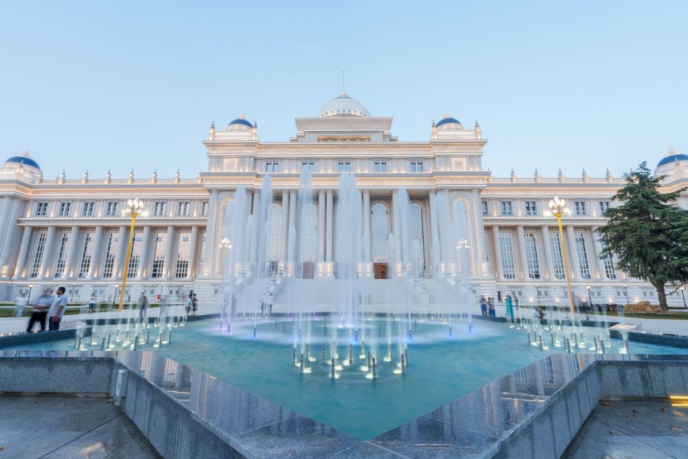 ↑位于杜尚别的塔吉克斯坦议会大楼。 新华社记者 周荻潇 摄