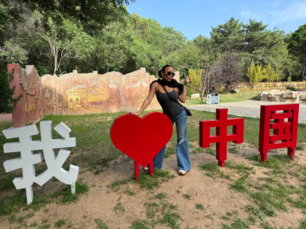 6月24日,香缇莫到北京长城旅行时拍照打卡留念。湖南卫视供图
