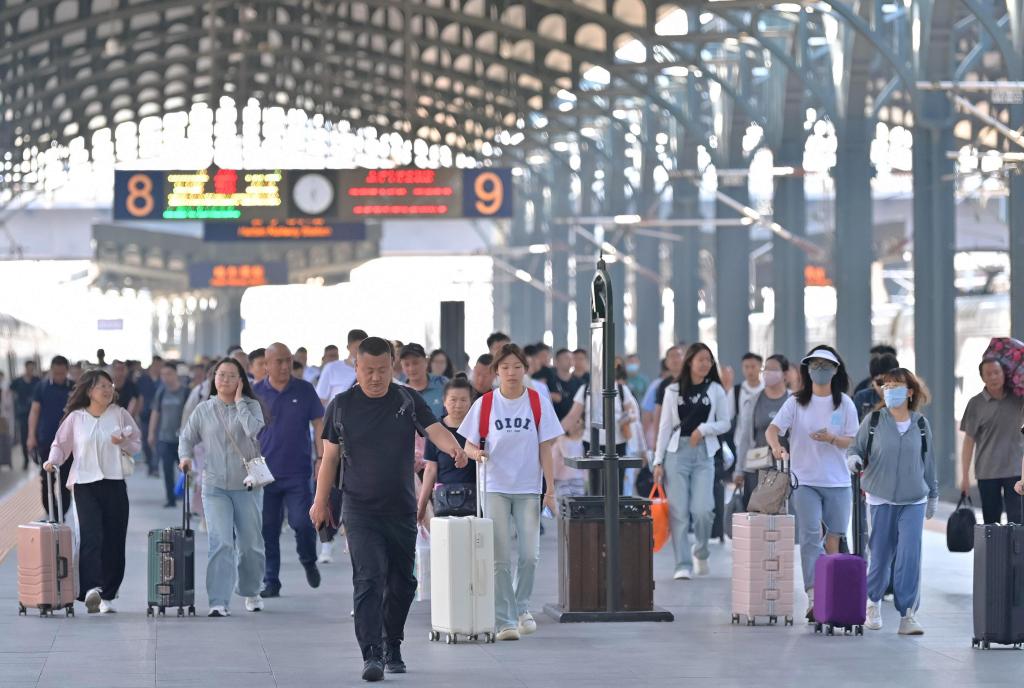 7月1日,旅客从哈尔滨火车站出行。新华社发(原勇摄)
