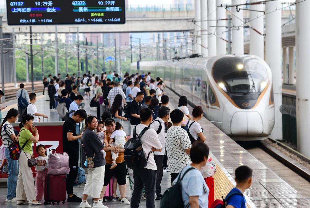 7月1日,旅客依次检票进入铁路湖州站站台。新华社发(伊凡摄)