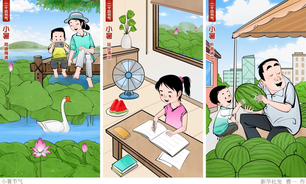 “小暑大暑,上蒸下煮”。古人认为小暑还不是一年中最热之时,在“暑”前添一个“小”字,以示酷热程度尚未达到极致。正如元代文人吴澄所编著《月令七十二候集解》记载:“暑,热也,就热之中分为大小,月初为小,月中为大,今则热气犹小也。”