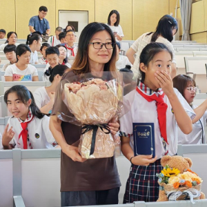 当惠州市惠城区金山湖小学校长李彩容念出这个名字,一个女孩走上前台,接过毕业证书。
